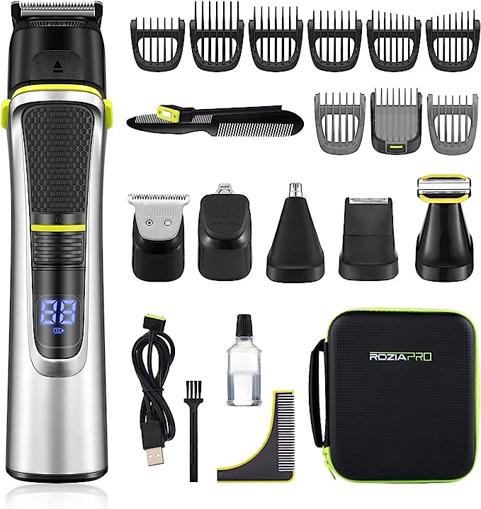 - 15 in 1 Hair Clippers for Men Professional: Multi-function men’s beard trimmer personal care series, including precision trimmer, extra-wide hair trimmer, body trimmer, detail trimmer, nose trimmer, micro shaver, 2 ear taper and 7 adjustable combs(1/2/3-7/4/9/12/16mm). No matter what style we want, this clippers for men can meet our needs. It is really practical!