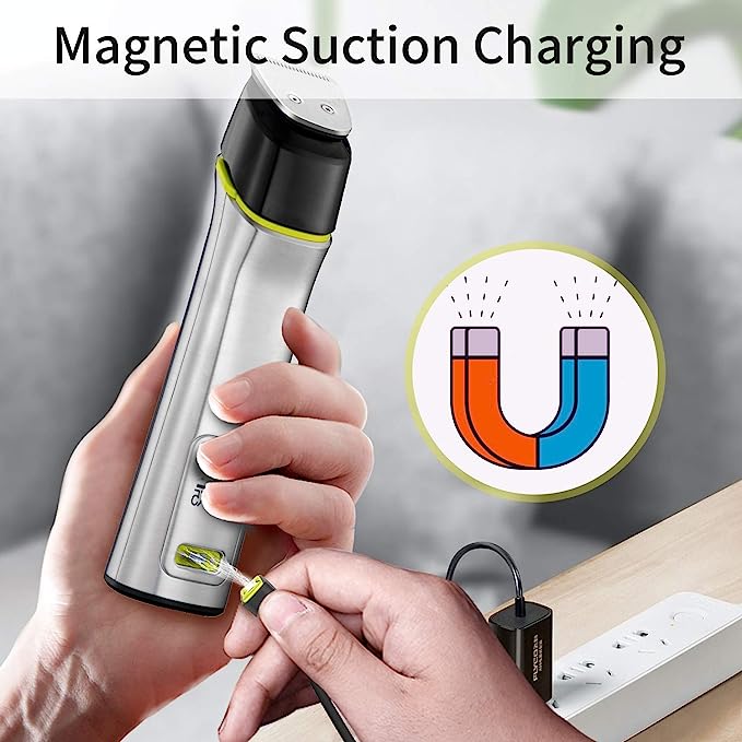 - Magnetic Suction Charging & LED Display: The charging cable of this moustache trimmers for men adopts a magnetic charging interface, which is convenient, fast and without the need to insert / unplug the charging cable. The mens hair clippers with long-lasting lithium batteries can work for up to 60 minutes with 2 hours charging time. This beard trimmers has an LED display. It is better for us to control the use time. No adapter)